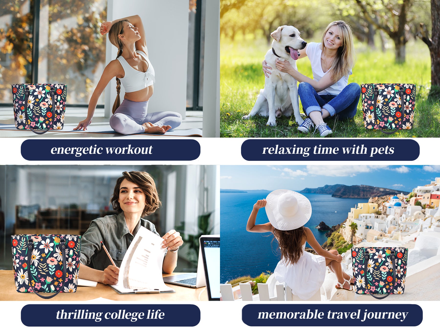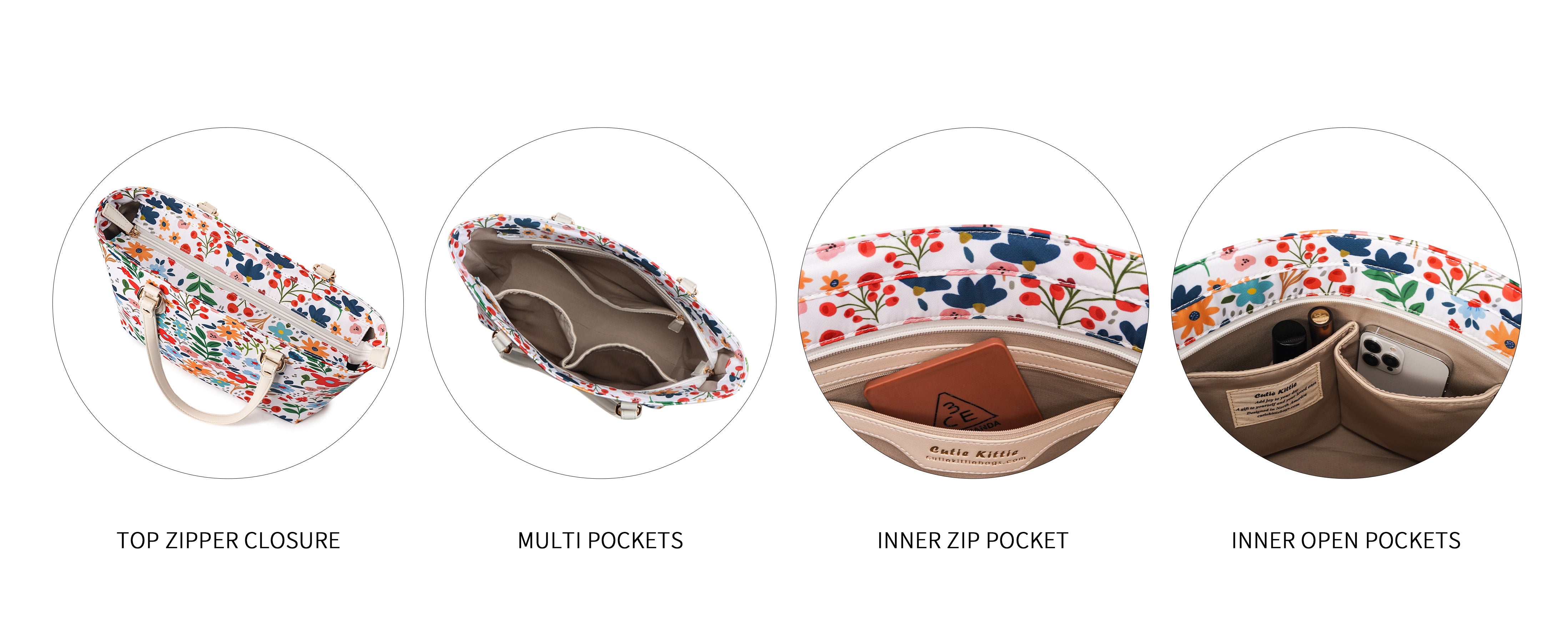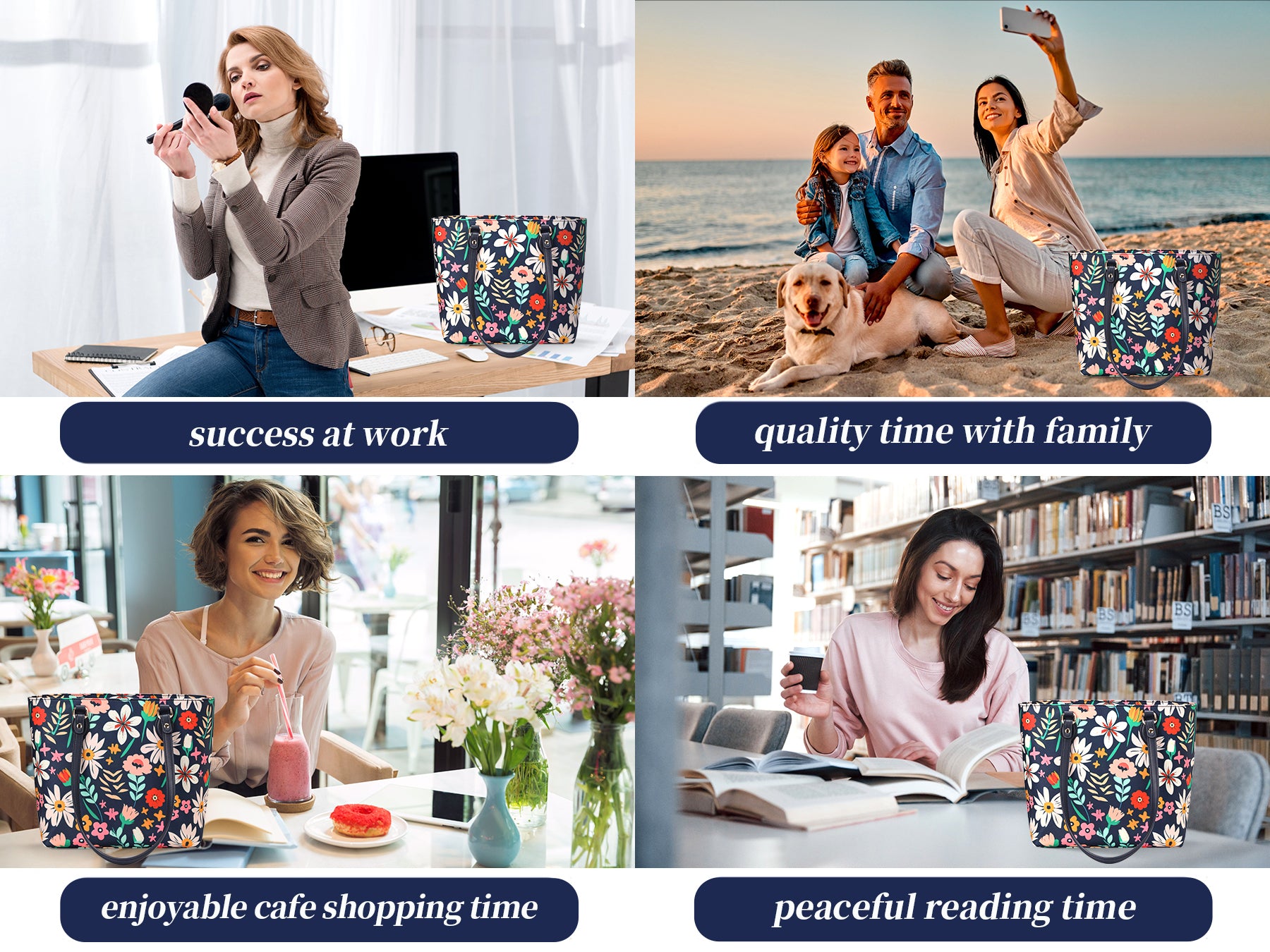 - 【Tote with Zipper】Stay clutter free with this cute tote bag, it features a zip top closure to keep items safe, one large inner zipper pocket, two inner slip pockets, and one zipper pocket at the back, this tote bag with pockets ensure tidy storage your keys, phones, wallet, cosmetics, and daily essentials.