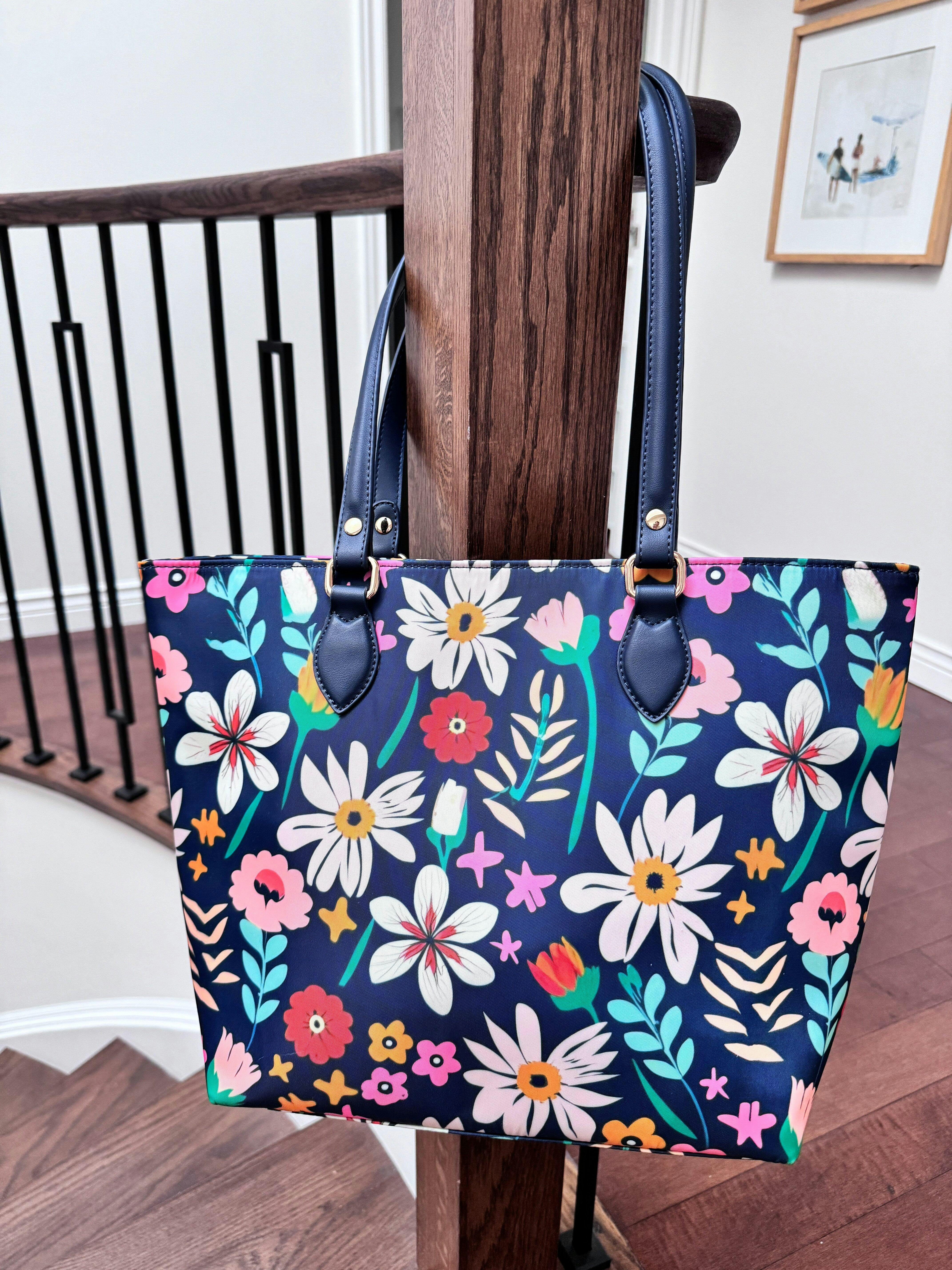 - 【Designer Purses for Women】 Designed in North America, the beautiful patterns are created by great artists. With soft red,pink,offwhite,green flowers on darker background, this elegant floral tote bag is a delightful accessory that brightens your mood and fits perfectly with all outfits, for everyday use.