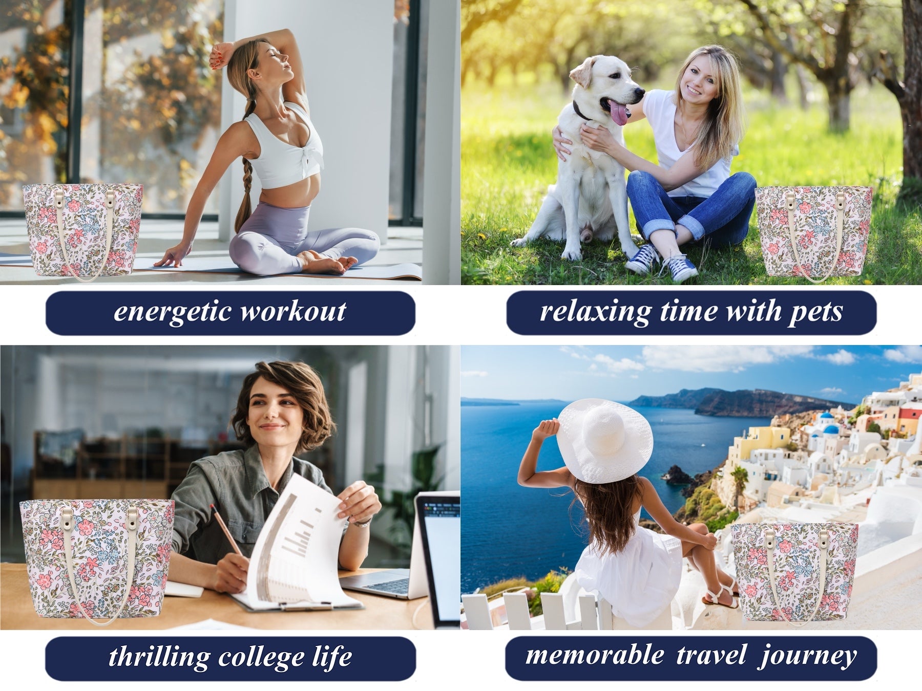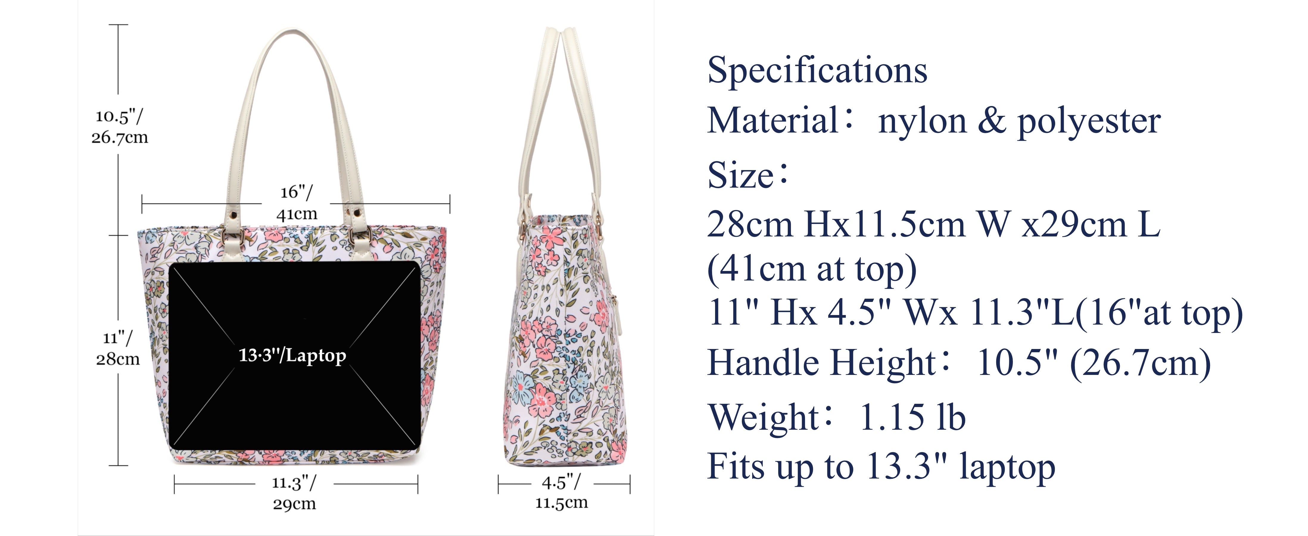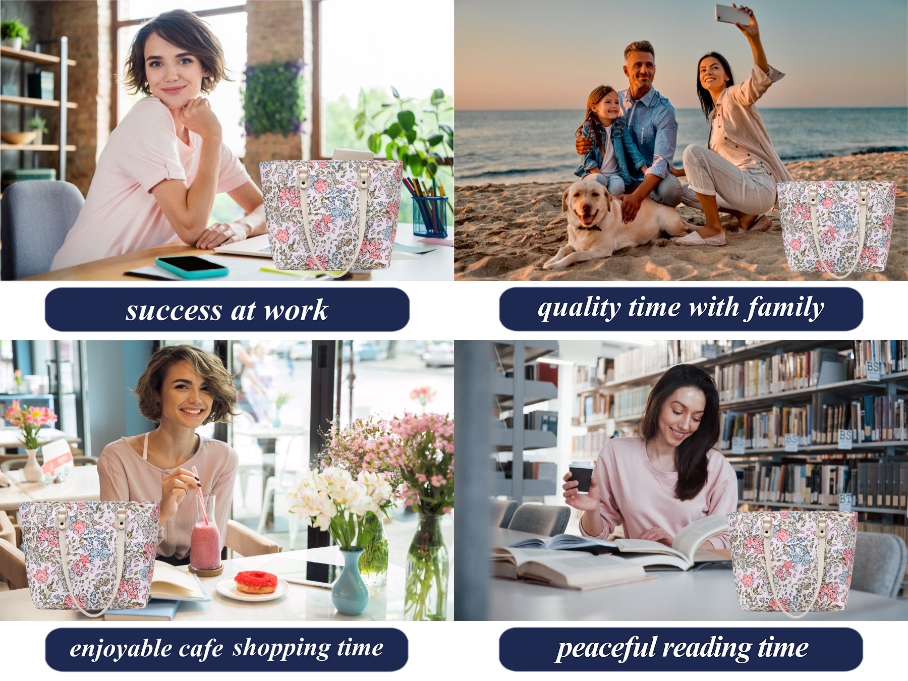【Everyday Tote Bag】This floral tote bag is 11.3”L x 4.5”W x 11” H , 16” wide at the top, roomy enough to hold 13.3” laptop, A4 size books, water bottles, cell phone, wallet and various other personal items. transitions seamlessly from workday to weekend, from grocery runs and café dates to weekend shopping sprees. This tote purse is perfect for everyday, work, shopping, school, books, bible, dating, party, travel, etc, It’s as functional as Instagram-worthy!