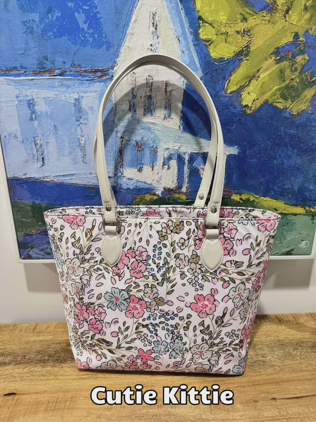 Cutie Kittie Tote bags for women, tote purse, nylon tote bag, with zipper and pockets, waterproof, lightweight,charming