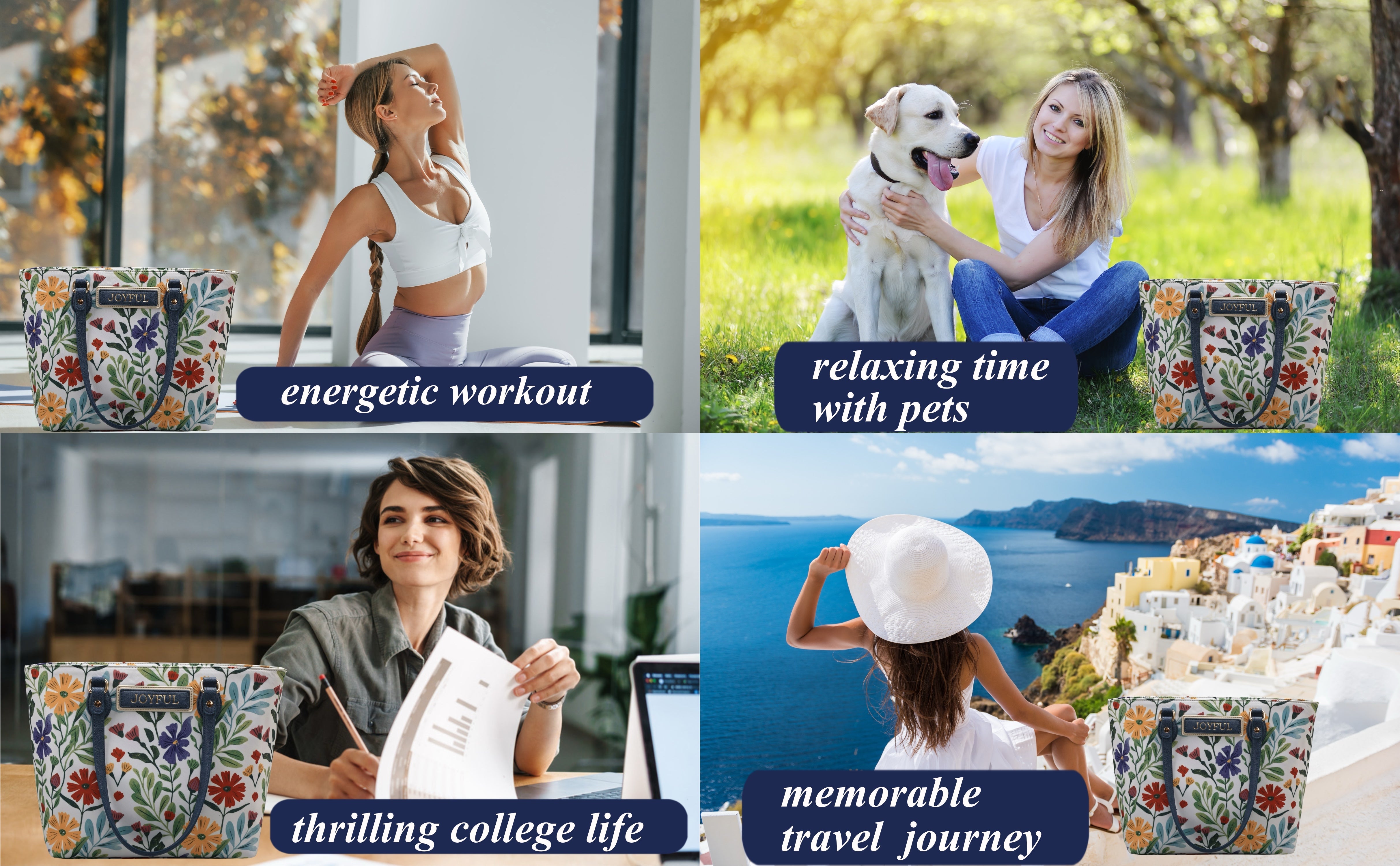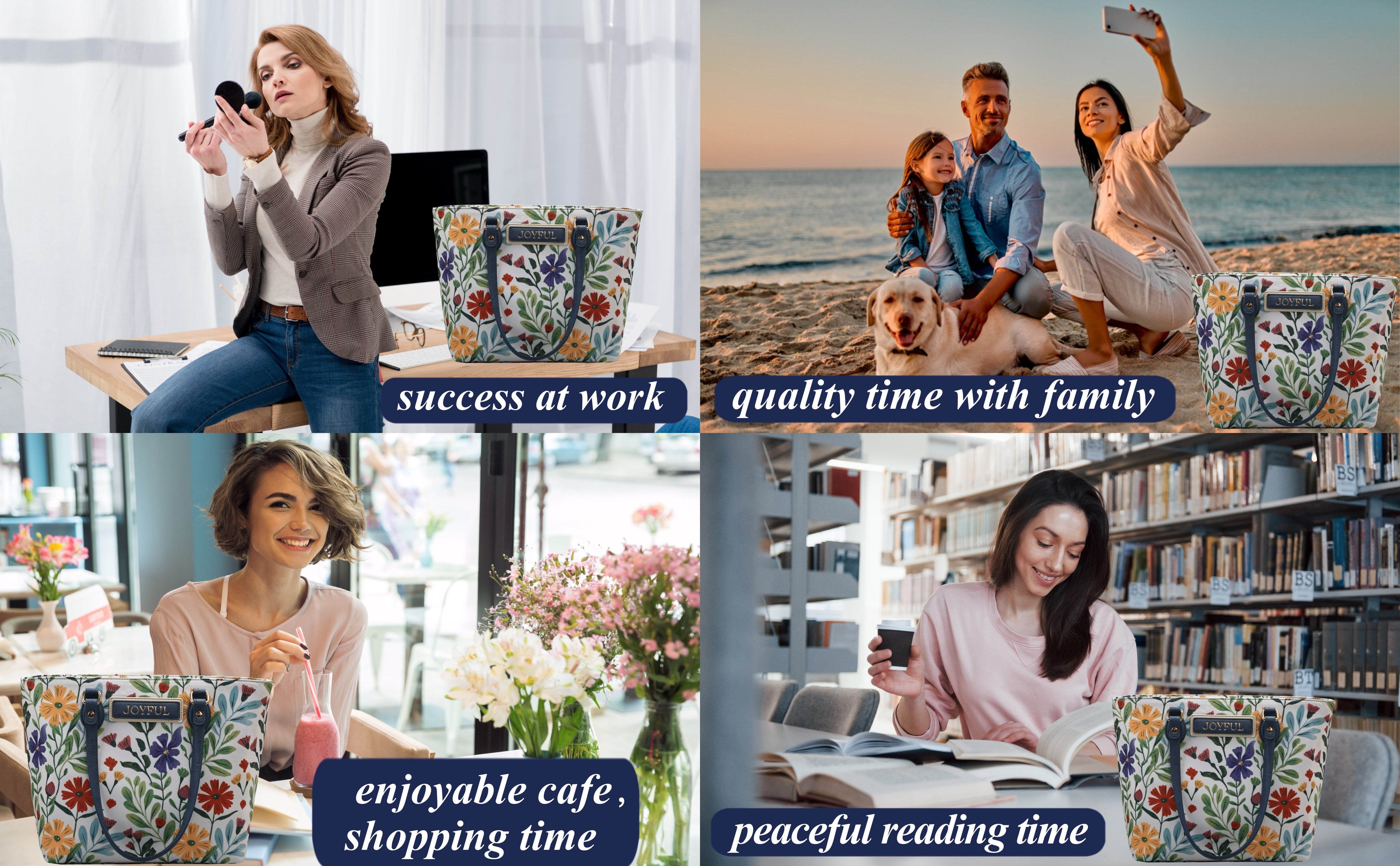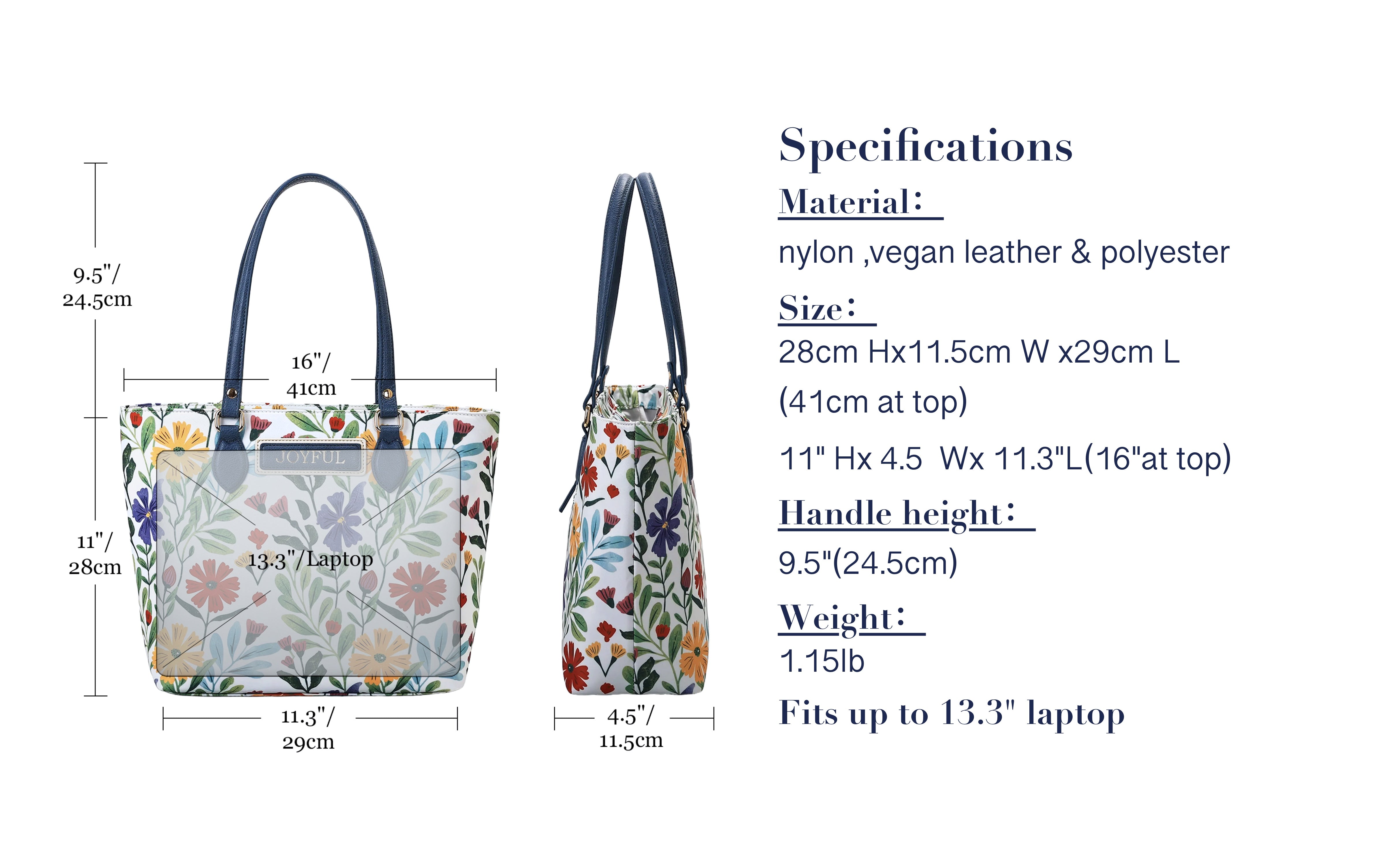 【Everyday Tote Bag】This floral tote bag is 11.3”L x 4.5”W x 11” H , 16” wide at the top, roomy enough to hold 13.3” laptop, A4 size books, water bottles, cell phone, wallet and various other personal items. transitions seamlessly from workday to weekend, from grocery runs and café dates to weekend shopping sprees. This tote purse is perfect for everyday, work, shopping, school, books, bible, dating, party, travel, etc, It’s as functional as Instagram-worthy!