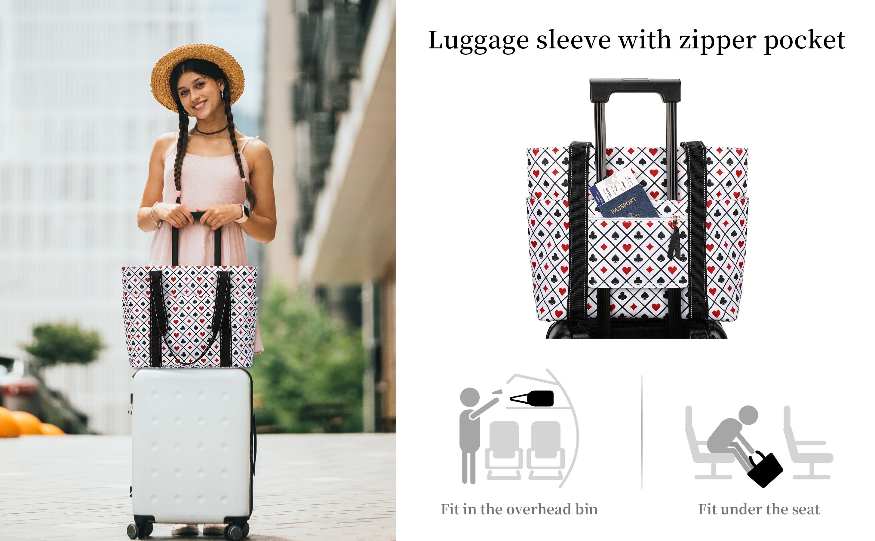 Durable Structured Womens Tote Bag: Made with premium nylon, this shoulder bag is waterproof and easy to clean. Not only does it meet your everyday needs, but it also features a hidden luggage sleeve that securely attaches to your suitcase handle to support your travel demands. The structured body and reinforced bottom allow the bag to stand upright, making packing and access easier.