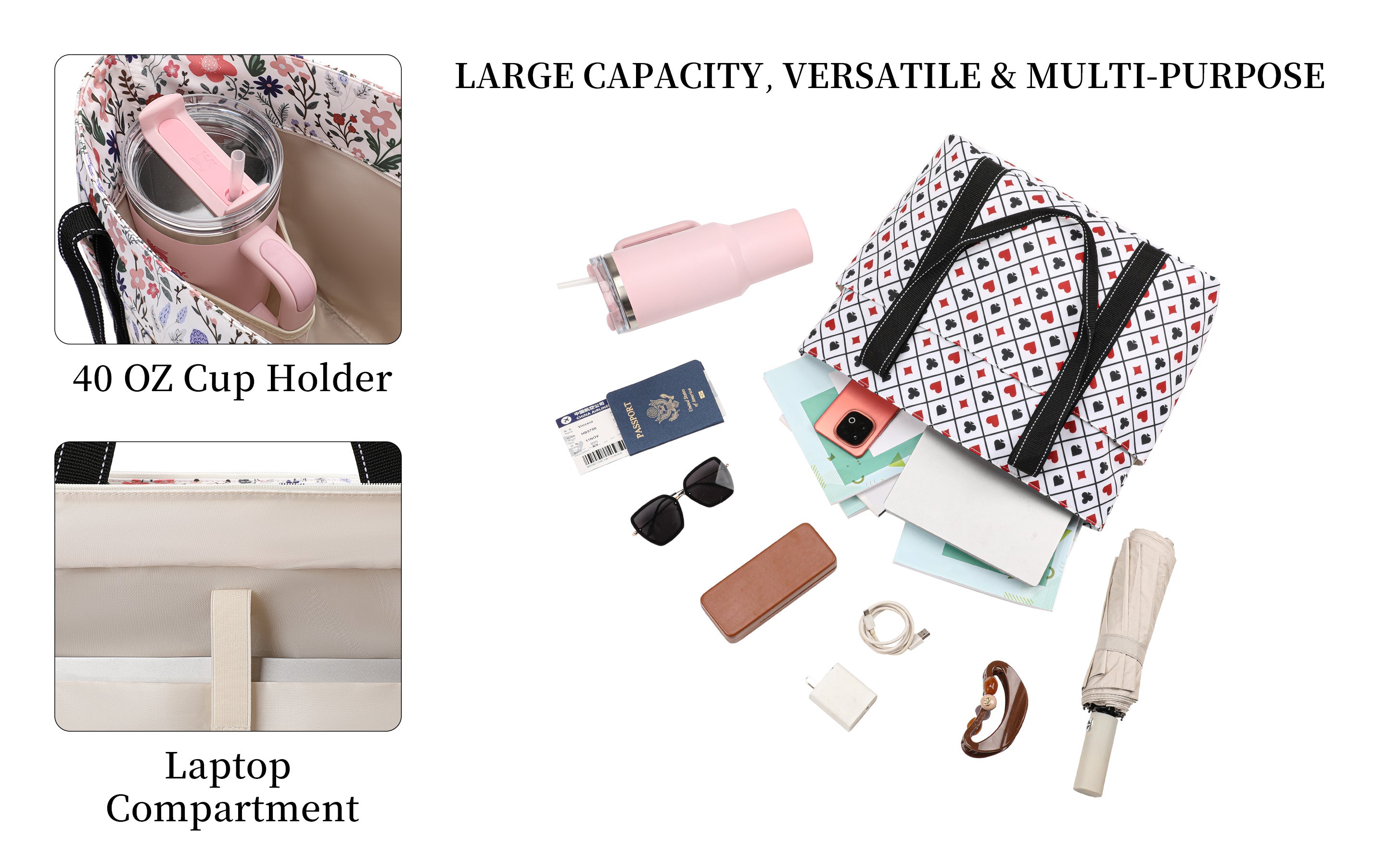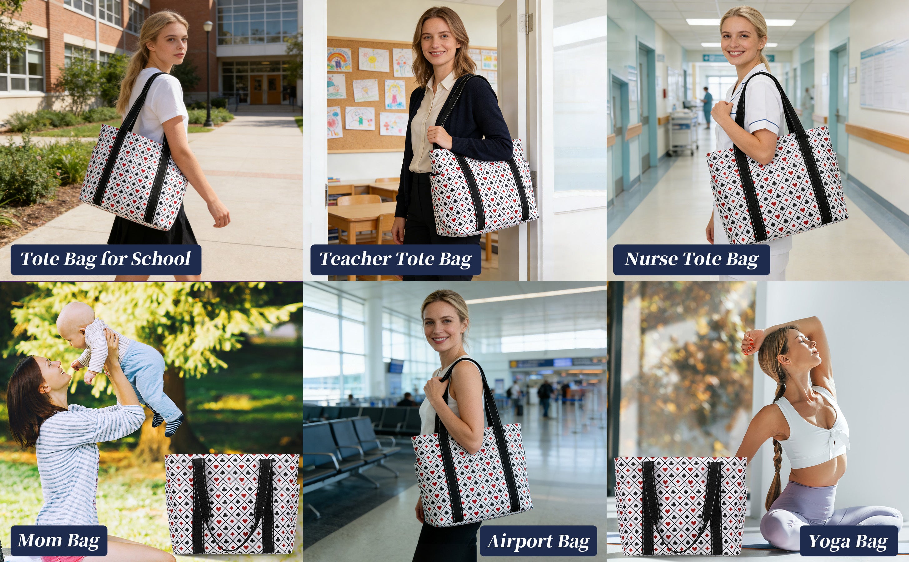 Versatile Cute Tote Bag: It can be used as a work bag, laptop bag, gym bag, beach tote bag, mom bag,school bag,office bag,bible bag,yoga bag,pilates bag,weekender,teacher,nurse,diaper bag,casual shoulder bag, and foldable travel bag. Suitable for work, beach, college,travel, shopping, gym ,road trip,hotel,airport,cruise and more occasion.