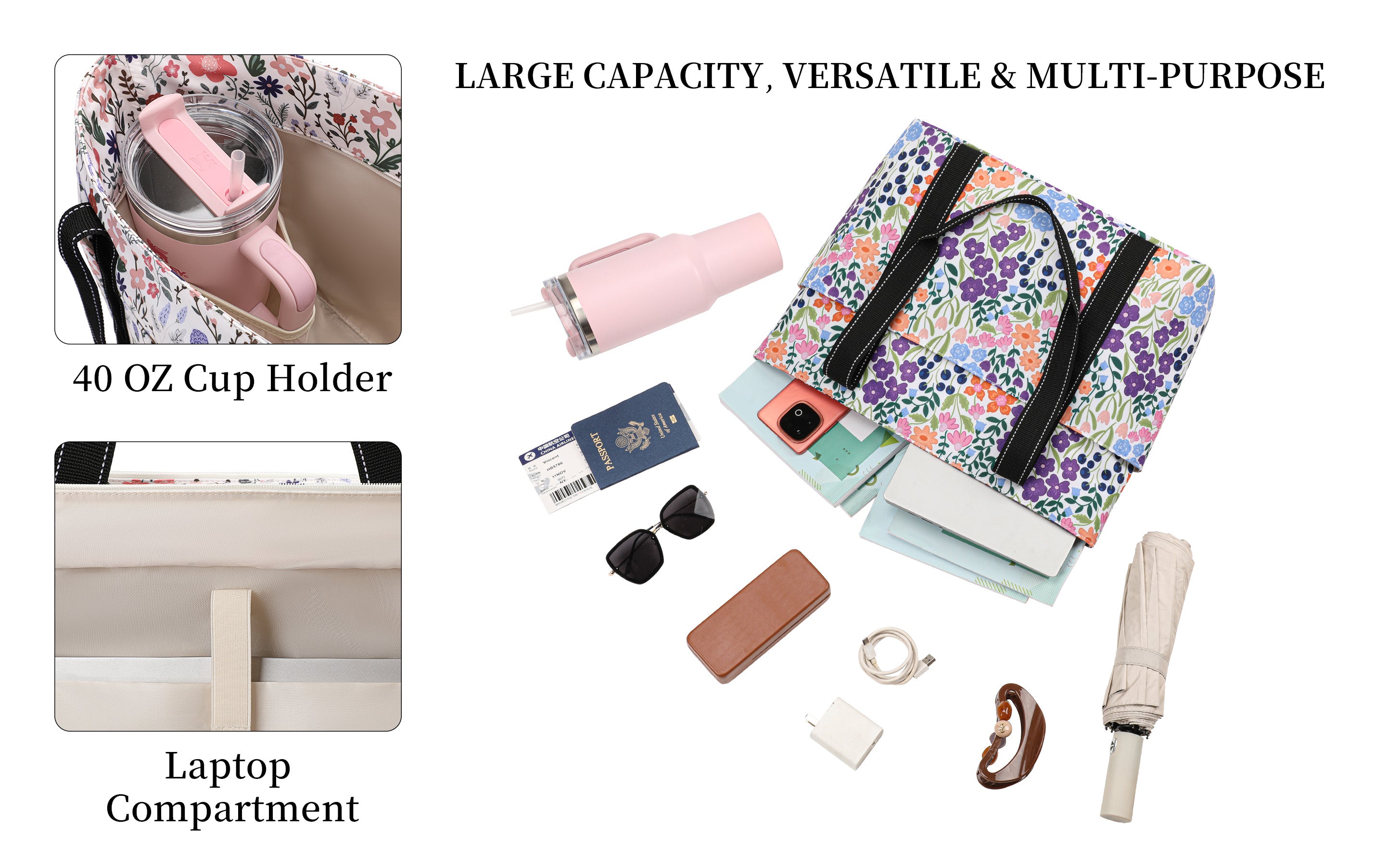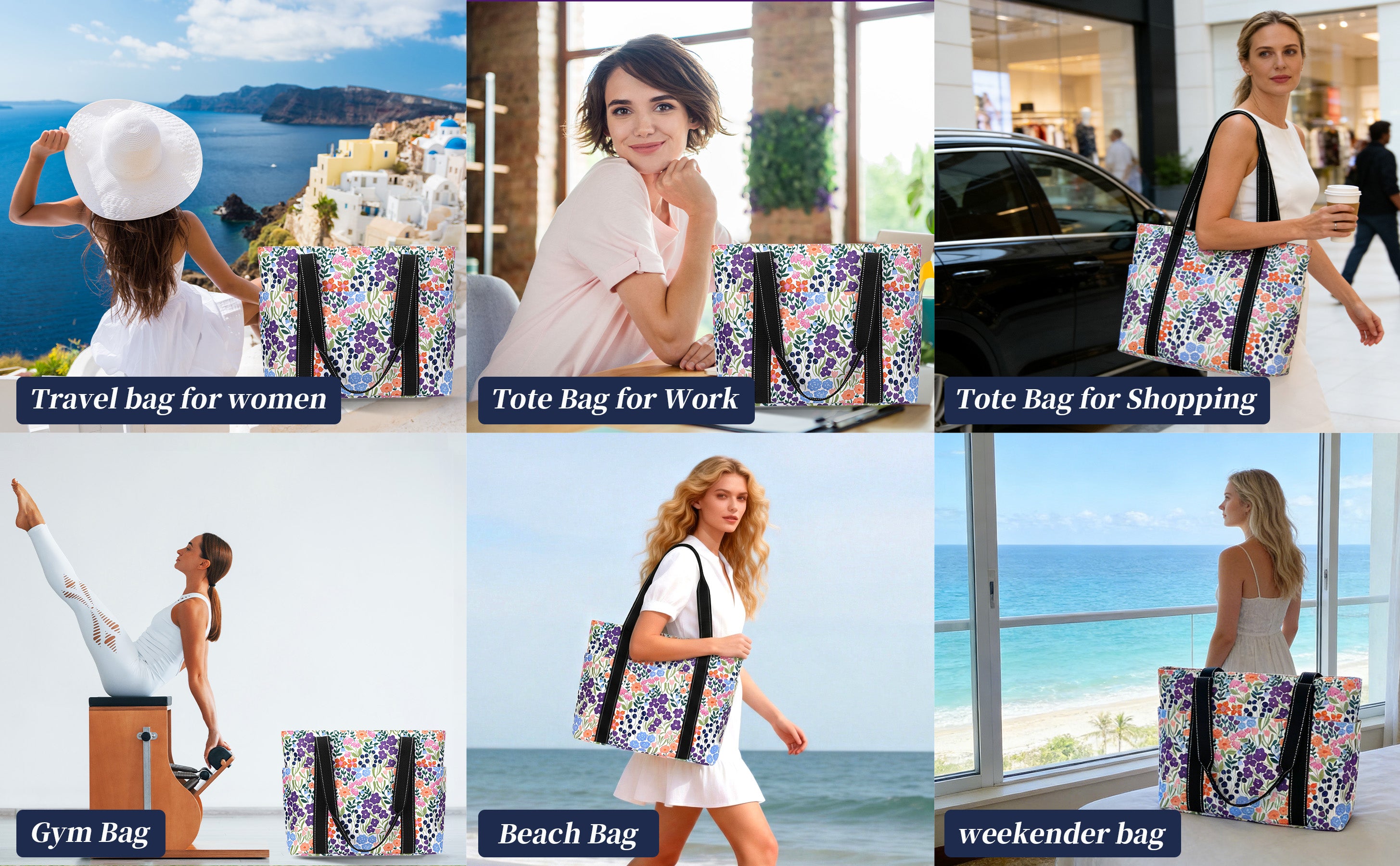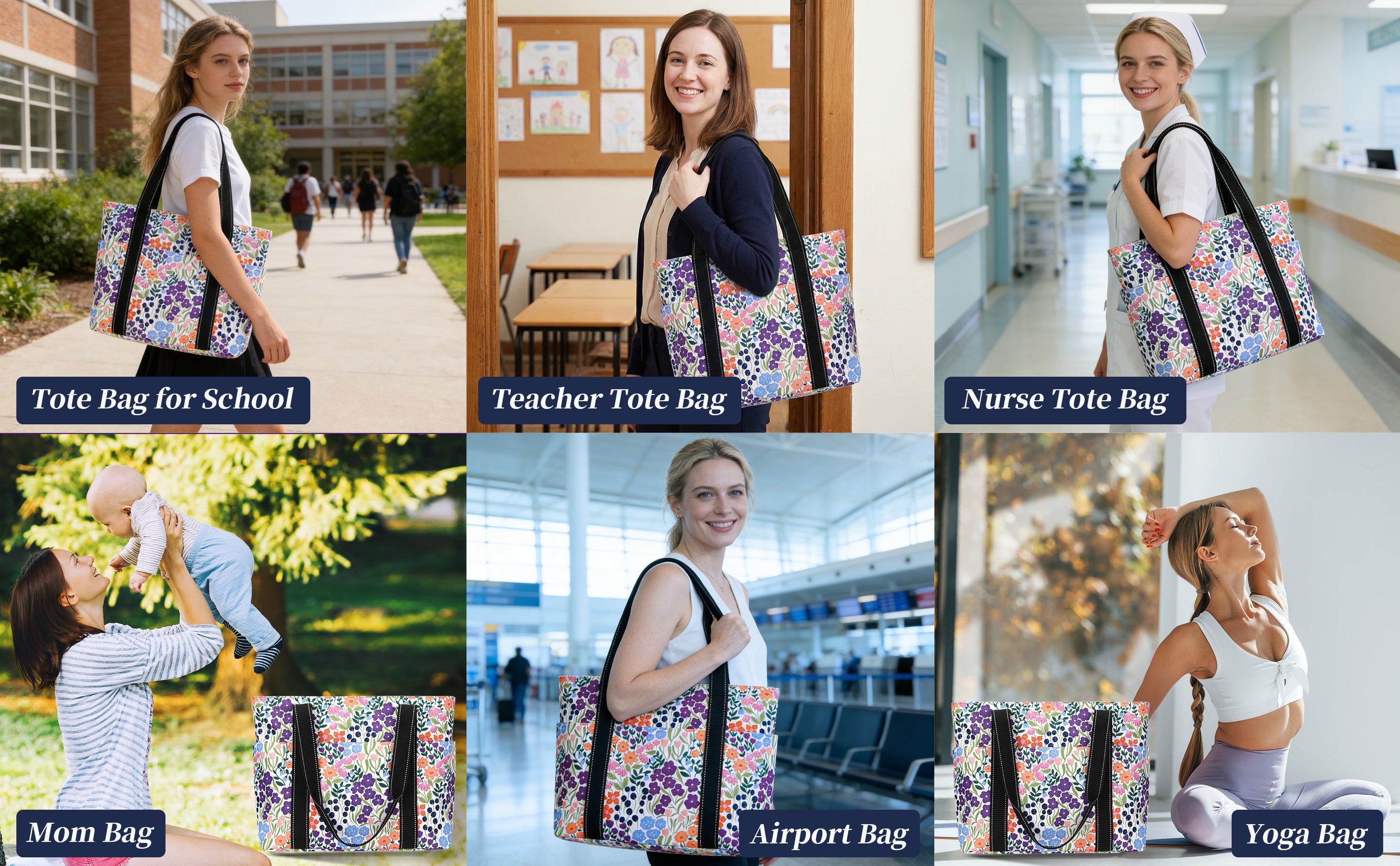 Versatile Cute Tote Bag: It can be used as a work bag, laptop bag, gym bag, beach tote bag, mom bag,school bag,office bag,bible bag,yoga bag,pilates bag,weekender,teacher,nurse,diaper bag,casual shoulder bag, and foldable travel bag. Suitable for work, beach, college,travel, shopping, gym ,road trip,hotel,airport,cruise and more occasion.