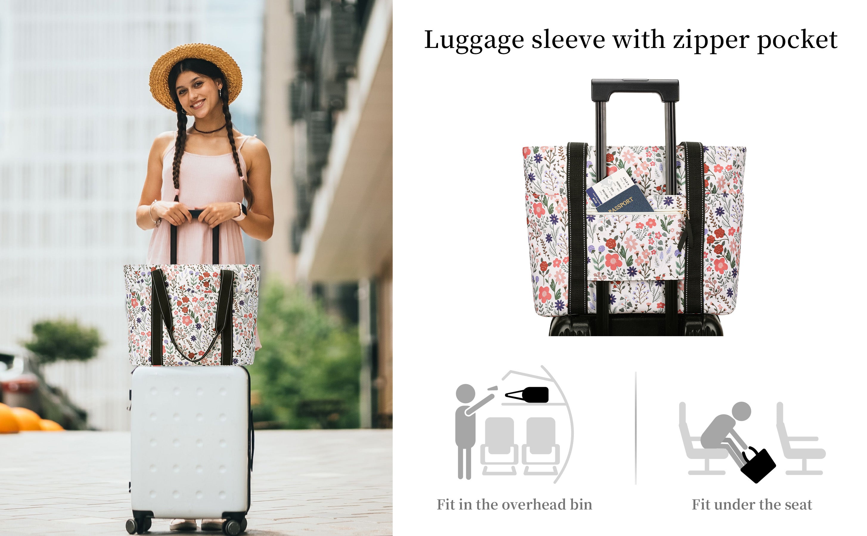 Durable Structured Womens Tote Bag: Made with premium nylon, this shoulder bag is waterproof and easy to clean. Not only does it meet your everyday needs, but it also features a hidden luggage sleeve that securely attaches to your suitcase handle to support your travel demands. The structured body and reinforced bottom allow the bag to stand upright, making packing and access easier.