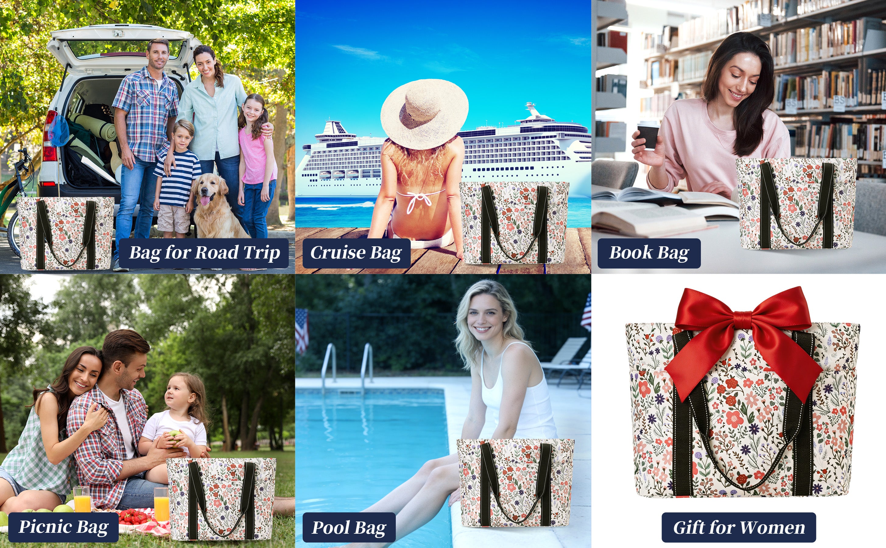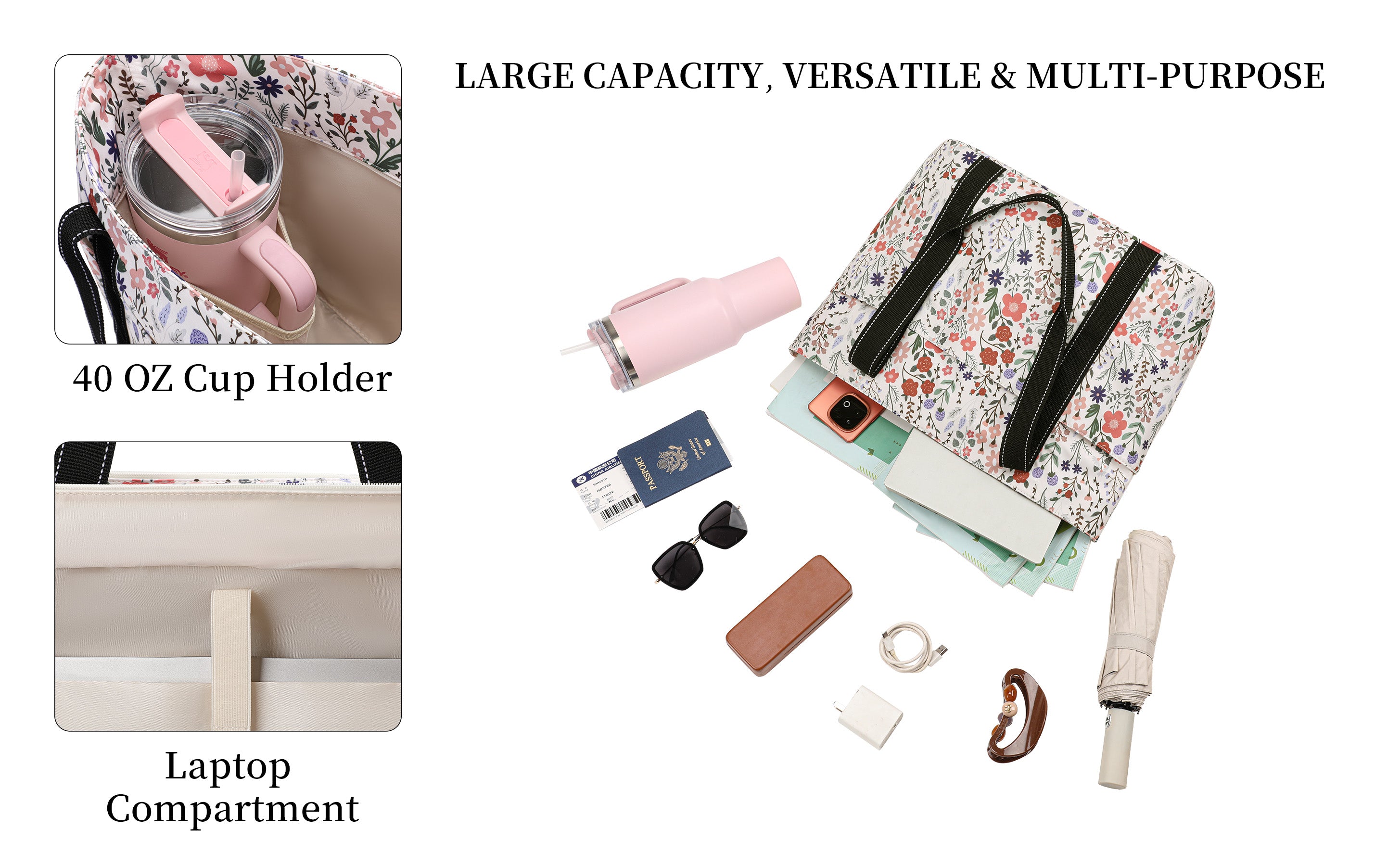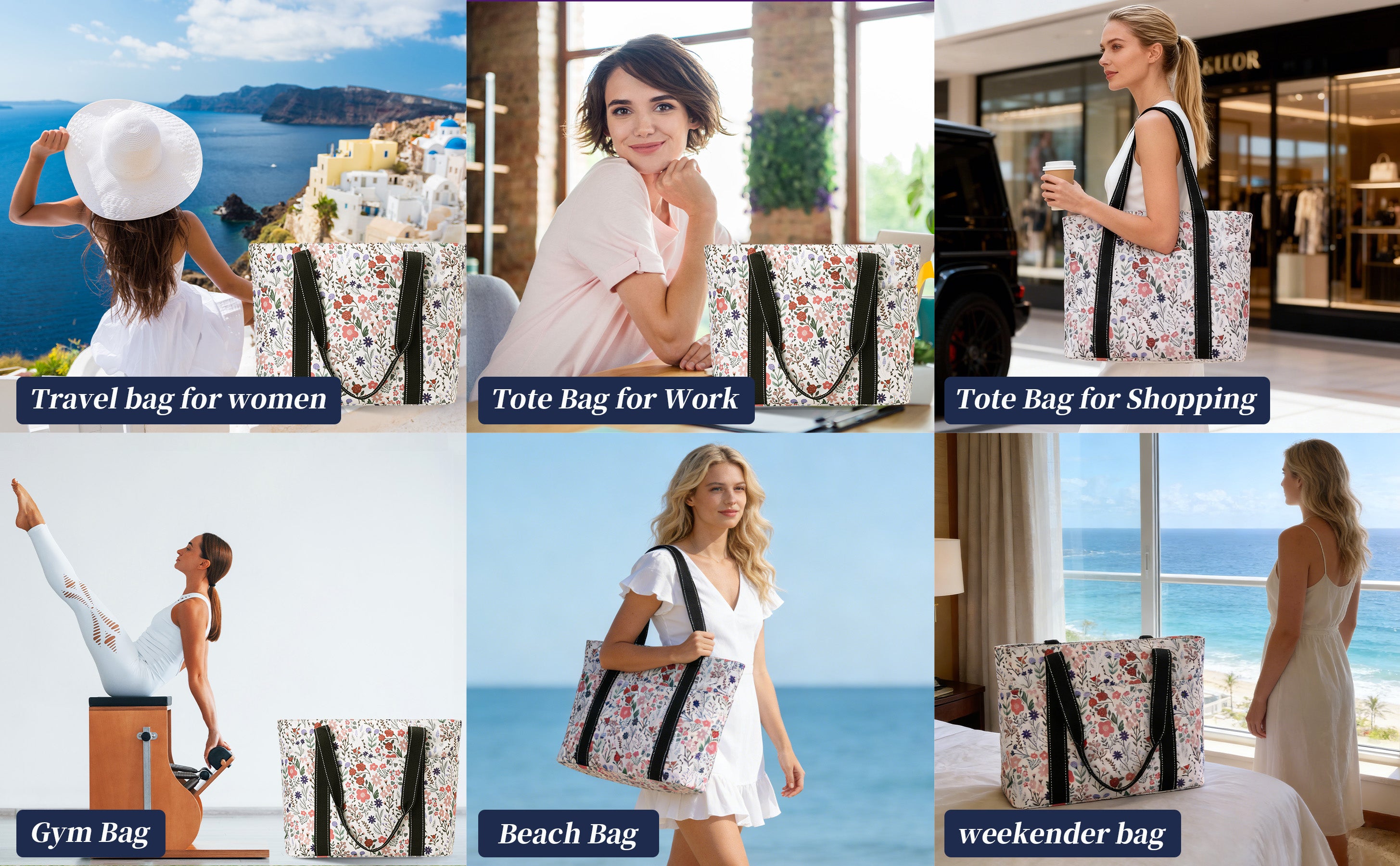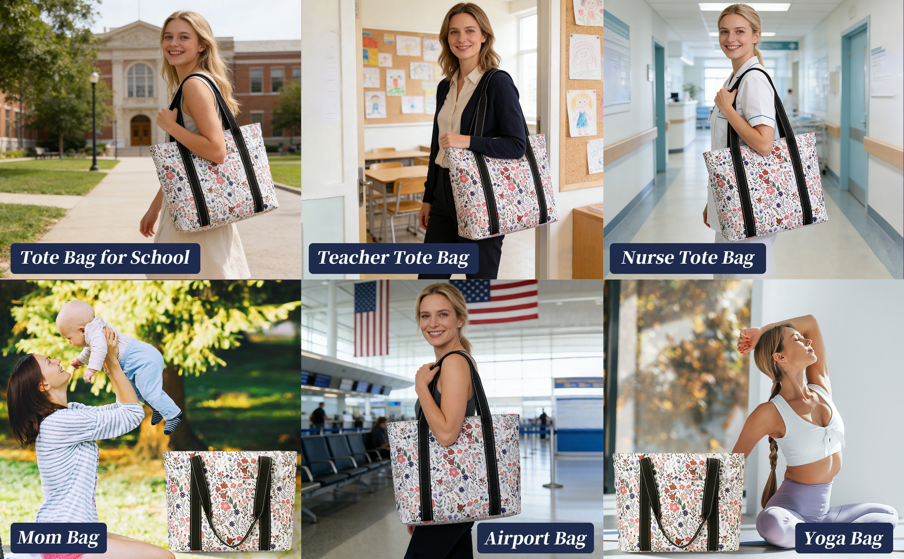 Versatile Cute Tote Bag: It can be used as a work bag, laptop bag, gym bag, beach tote bag, mom bag,school bag,office bag,bible bag,yoga bag,pilates bag,weekender,teacher,nurse,diaper bag,casual shoulder bag, and foldable travel bag. Suitable for work, beach, college,travel, shopping, gym ,road trip,hotel,airport,cruise and more occasion.