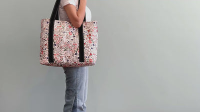 Designer tote bags for Women — Designed in North America, this soft pastel floral pattern in dusty rose, muted lavender, sage green, and warm earth tones adds a natural and soothing touch, perfect for everyday outfits while exuding effortless elegance.