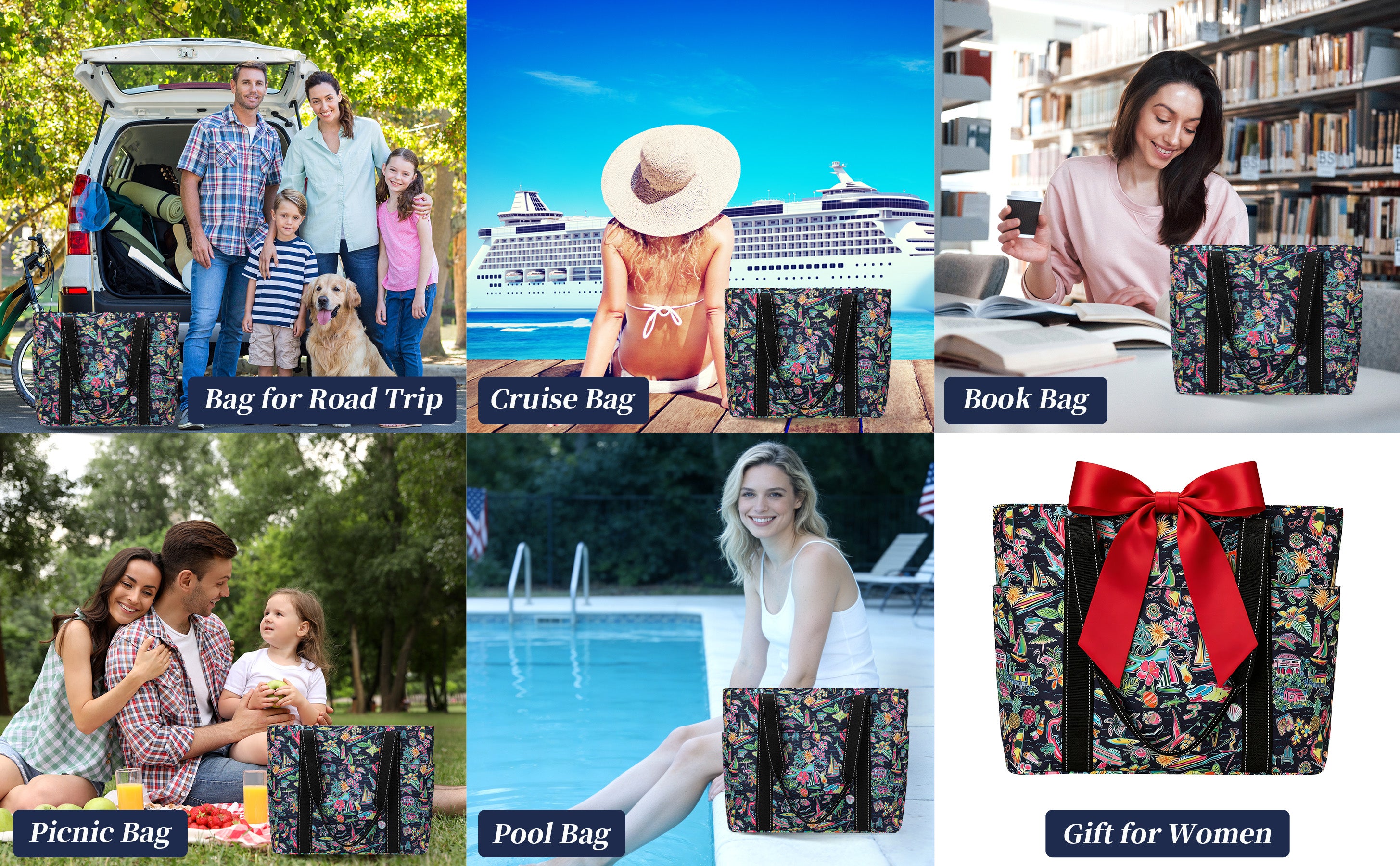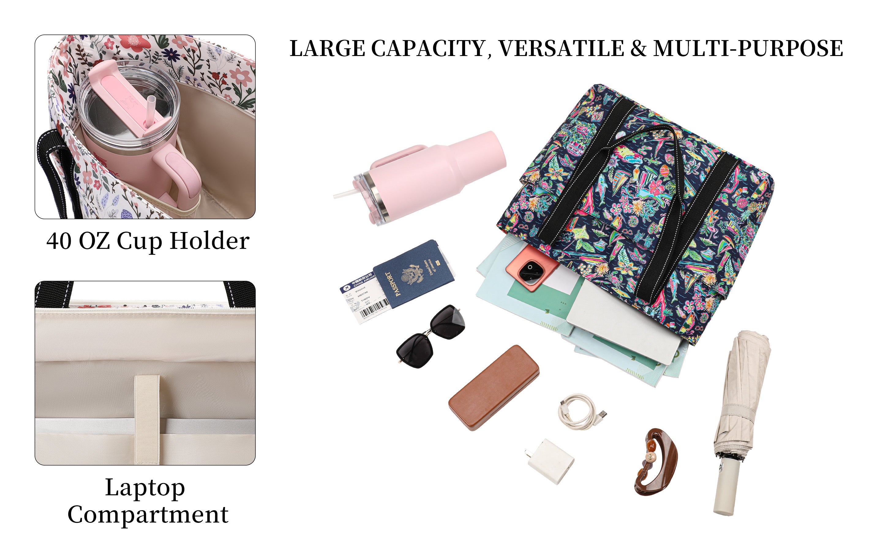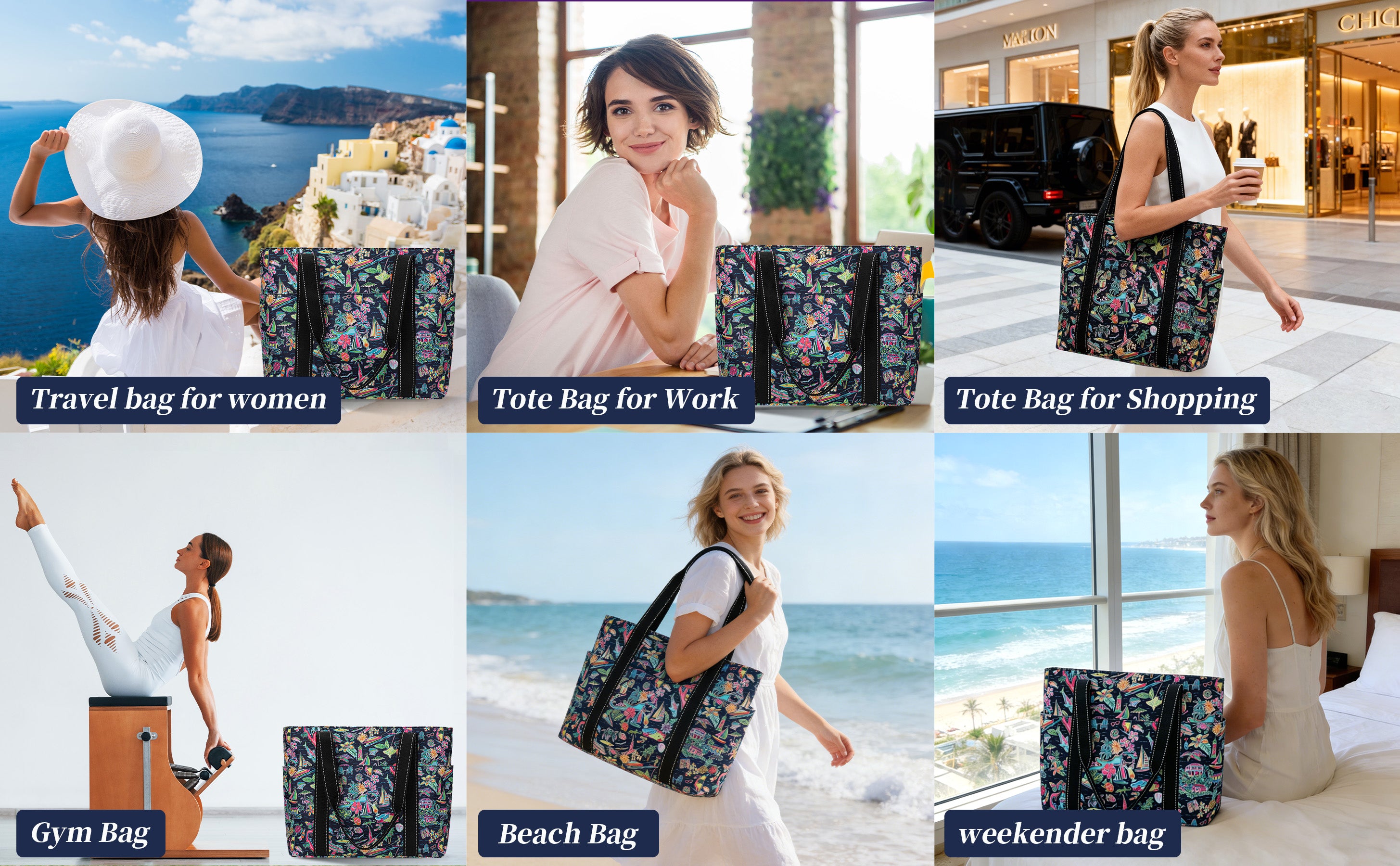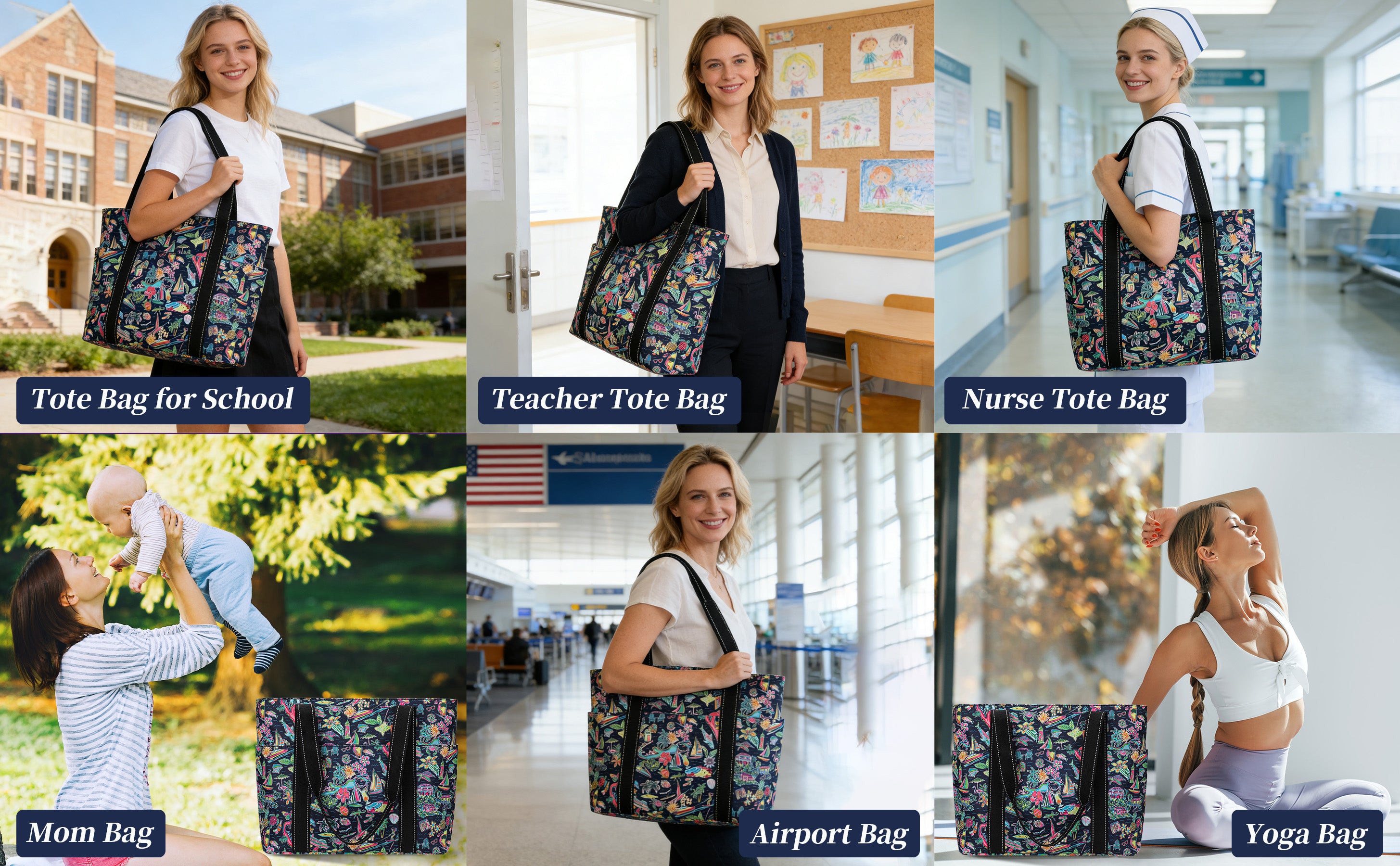 Versatile Cute Tote Bag: It can be used as a work bag, laptop bag, gym bag, beach tote bag, mom bag,school bag,office bag,bible bag,yoga bag,pilates bag,weekender,teacher,nurse,diaper bag,casual shoulder bag, and foldable travel bag. Suitable for work, beach, college,travel, shopping, gym ,road trip,hotel,airport,cruise and more occasion.