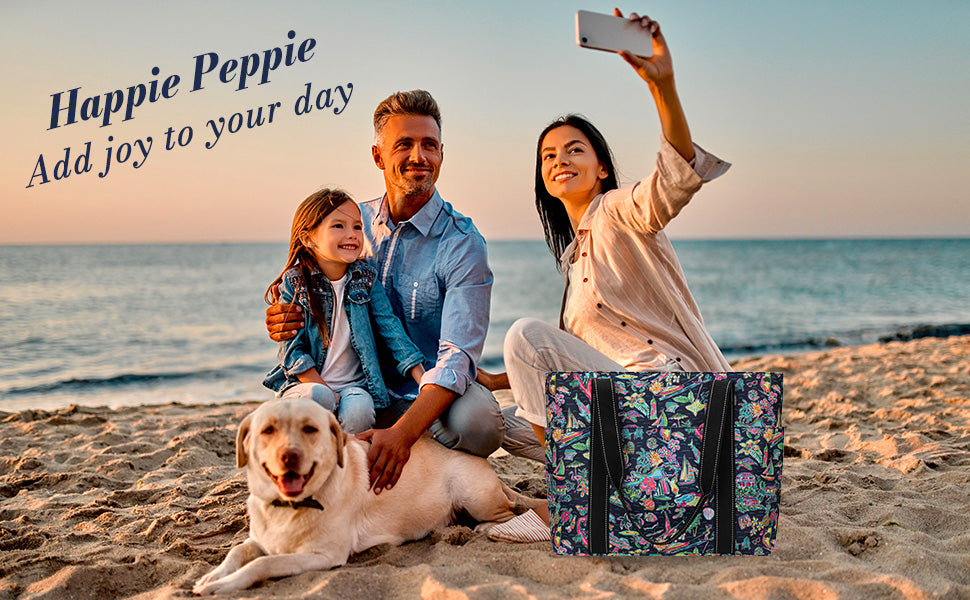 Happie Peppie Tote Bag for Women,Tote Bag with Laptop Compartment and Cup Holder,Shoulder Bag Handbag for Work, Travel, Gym, Nurse Teacher School ,with Multiple Pockets Top Zipper Closure